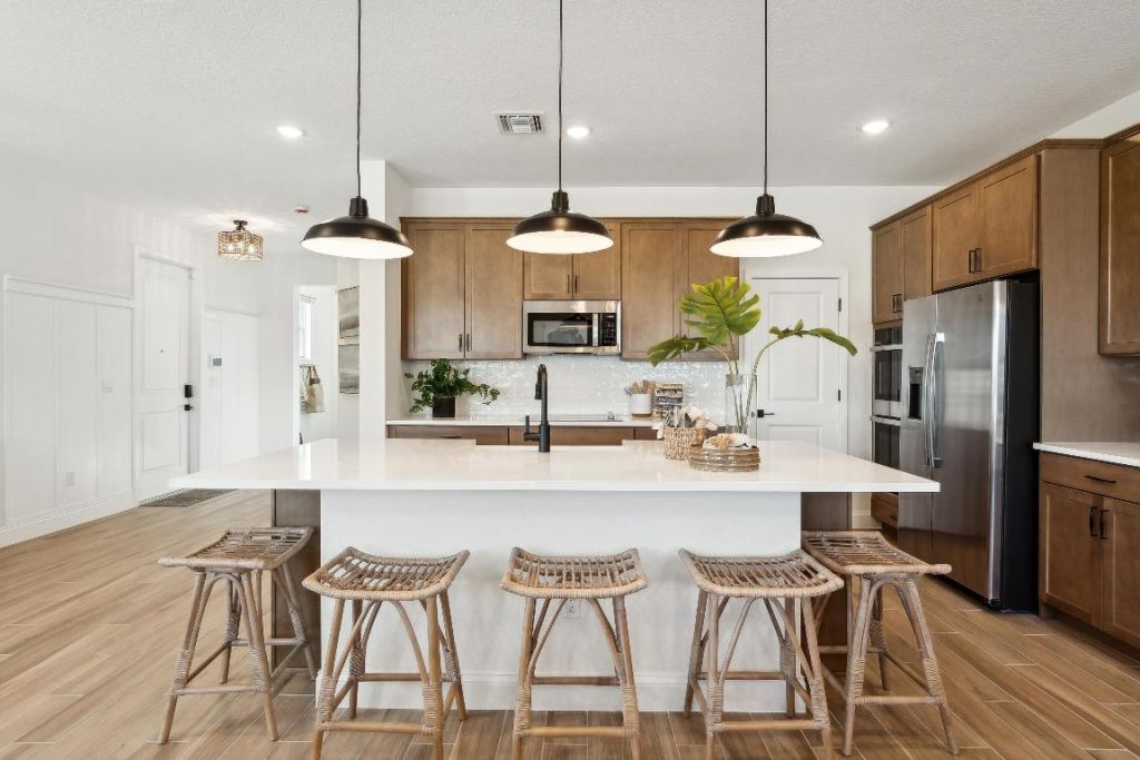 This Fullerton III showcases an upgraded Farmhouse look throughout, creating a warm and inviting atmosphere. The open, airy great room is ideal for social gatherings and flows seamlessly into the impressive kitchen, complete with a center island and stylish Quill cabinetry that will delight the cook in the family. A cozy dining area features sliding door access to the patio, providing an easy transition to outdoor living. An extended backyard adds additional space for outdoor enjoyment and entertaining. Upstairs, the elegant primary suite offers a spacious bath and walk-in closet, creating a relaxing private retreat. A convenient second-story laundry room is thoughtfully located near the bedrooms, while a versatile loft area offers the perfect space for relaxing, working from home, or enjoying game nights. Community Amenities:Enjoy resort-style living with sparkling pool & cabanas, pickleball courts, tot lot, and tranquil walking trails around scenic ponds. Whether you're looking to unwind or stay active, Salerno Reserve offers the lifestyle you've been seeking-just steps from your front door.Prime Location:- Easy access to I-95 and the Florida Turnpike- Minutes to Stuart Beach and other South Florida coastal gems- Close to shops, dining, and entertainment in historic Downtown Stuart- Conveniently located 40 miles from Palm Beach International Airport- Near world-class golf courses, museums, and outdoor recreation