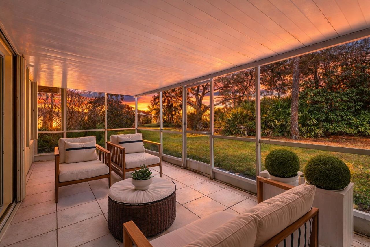 Enjoy low-maintenance living in the gated 55+ community of Whispering Sound. This well-maintained 2-bedroom, 2-bath home offers a bright, open layout with high ceilings and a split-bedroom floor plan for added privacy. The spacious primary suite features dual closets and a large en-suite bath with soaking tub and separate shower. Unwind on the screened-in patio just steps from the clubhouse, pool, spa, and fitness center. HOA includes roof, exterior maintenance, landscaping, cable, internet, and more-all just minutes from downtown Stuart, boating, shopping, dining, and medical facilities.